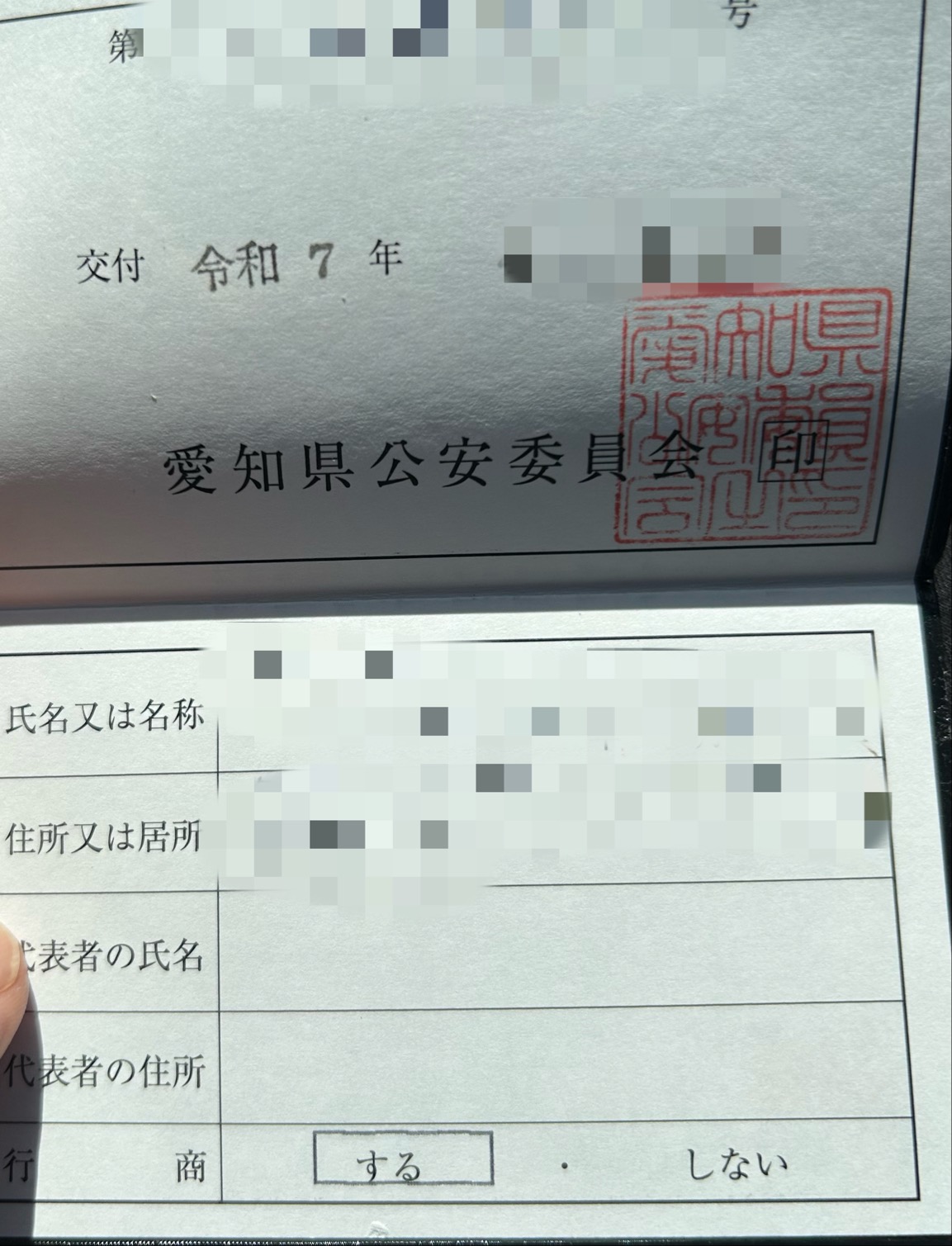 今回は愛知県内の方からメルカリ等のフリマで古物営業を行うための「古物商許可」を取得させていただきました。